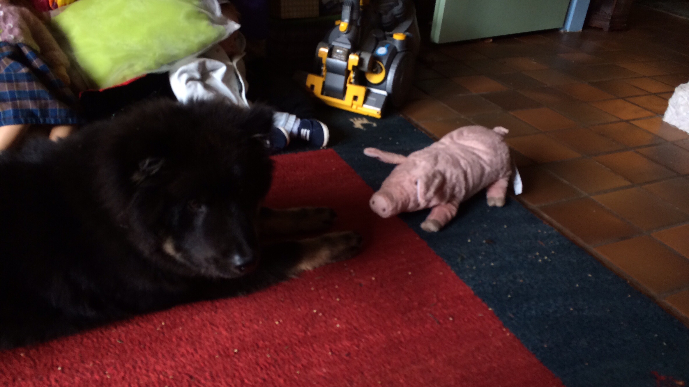 Klaus hat uns zum Abschied jedem noch ein süßes Schweinchen geschenkt. Mit diesem hatten unsere Welpen während der Aufzucht gespielt. Und die sehen noch so neu aus? 😉